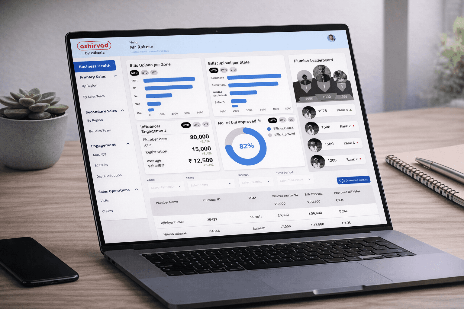Ashirvad required an internal sales application to oversee and streamline sales operations.